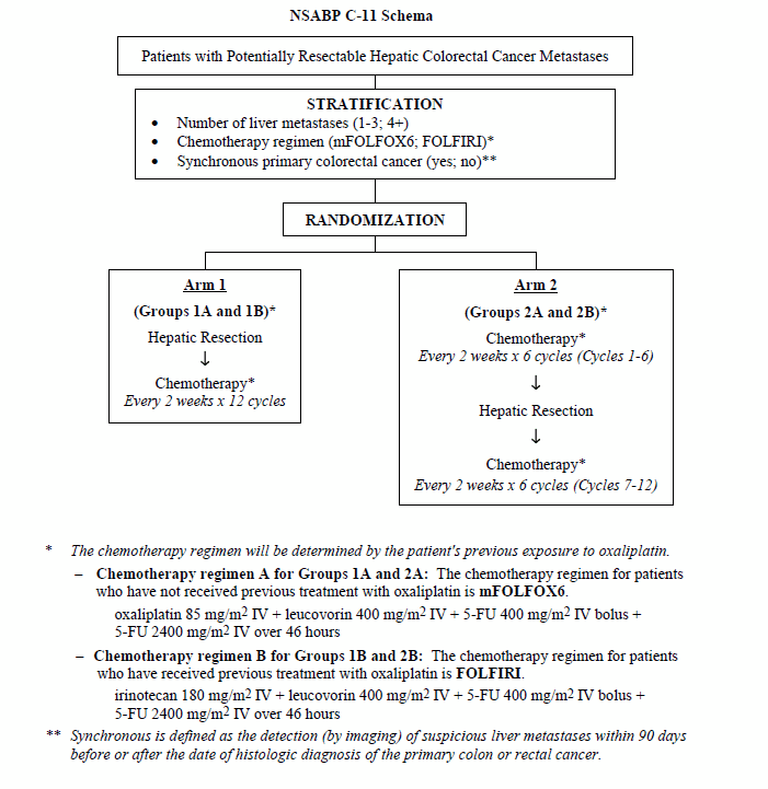 For an electronic/printable version of this overview please click HERE. Protocol C-11 A Phase III Study Evaluating the Role of Perioperative Chemotherapy in Patients with Potentially Resectable Hepatic Colorectal Metastases Specific Aim To evaluate the difference in recurrence-free survival (RFS) between those patients receiving perioperative (preoperative plus postoperative) adjuvant chemotherapy and those receiving only postoperative adjuvant chemotherapy following liver resection for colorectal metastases. ![]() |